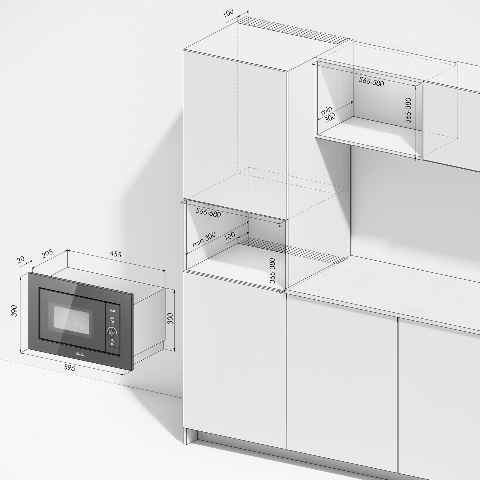 - Тип микроволновой печи встраиваемая в шкаф до 30 см / в шкаф до 56 см / колонну